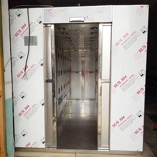 1. 貨淋室(風淋室)由箱體、門、高效過濾器、送風機、配電箱、噴嘴等幾大部件組成。