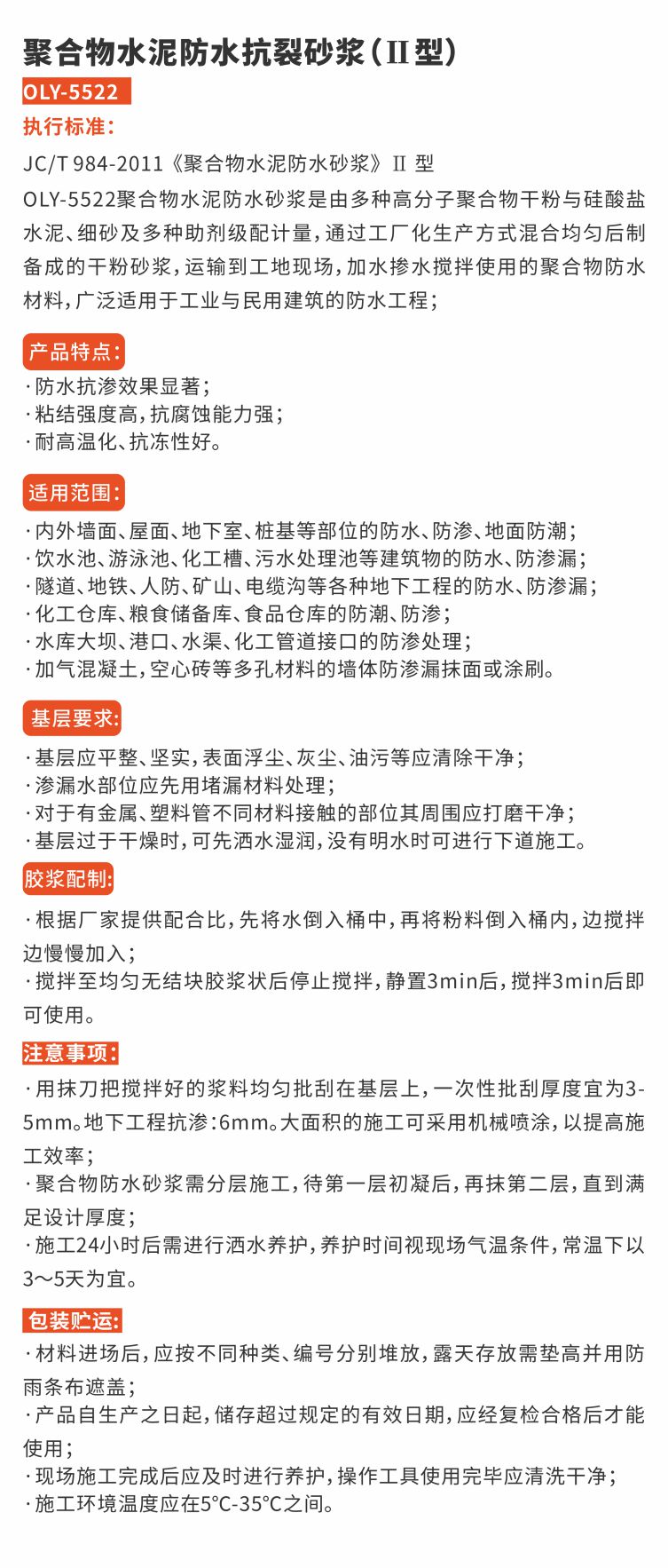 聚合物水泥防水抗裂砂漿(雙組份 II型)