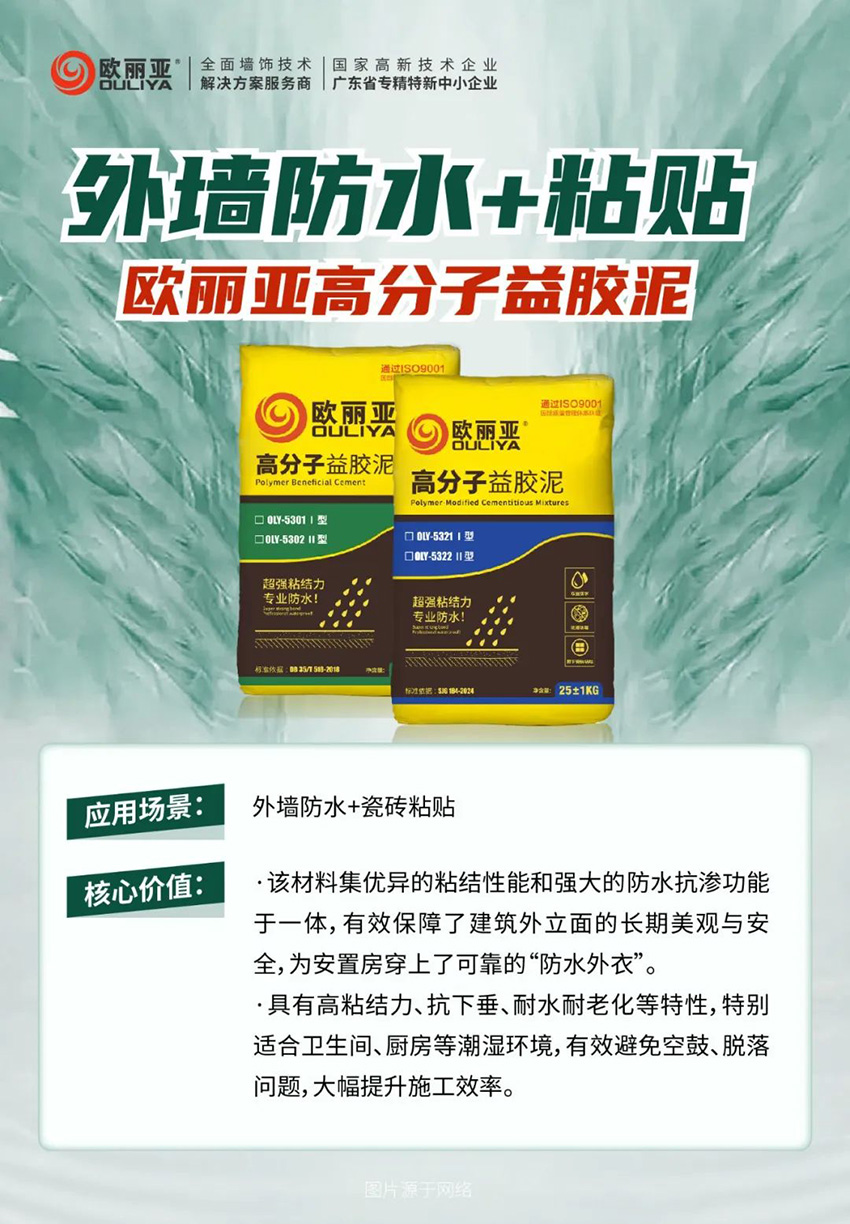 東莞市歐麗亞環保材料有限公司專注于“環保,創新”型建筑裝飾材料,瓷磚膠,硅藻泥,石材防水背膠,抗裂砂漿,裝飾砂漿,防水系列,自流平水泥,防霉膩子,二合一填縫劑的研發、生產、營銷、技術咨詢于一體的墻飾高新技術企業。